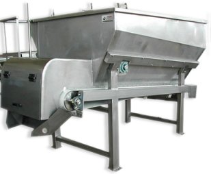 It is consisted of a big hull, where the raisins are emptied and of a belt with adjustable speed at the bottom of the hull. At the end of the machine there is a mechanism that brakes the lumps of raisins without hurting the skin of raisins.
